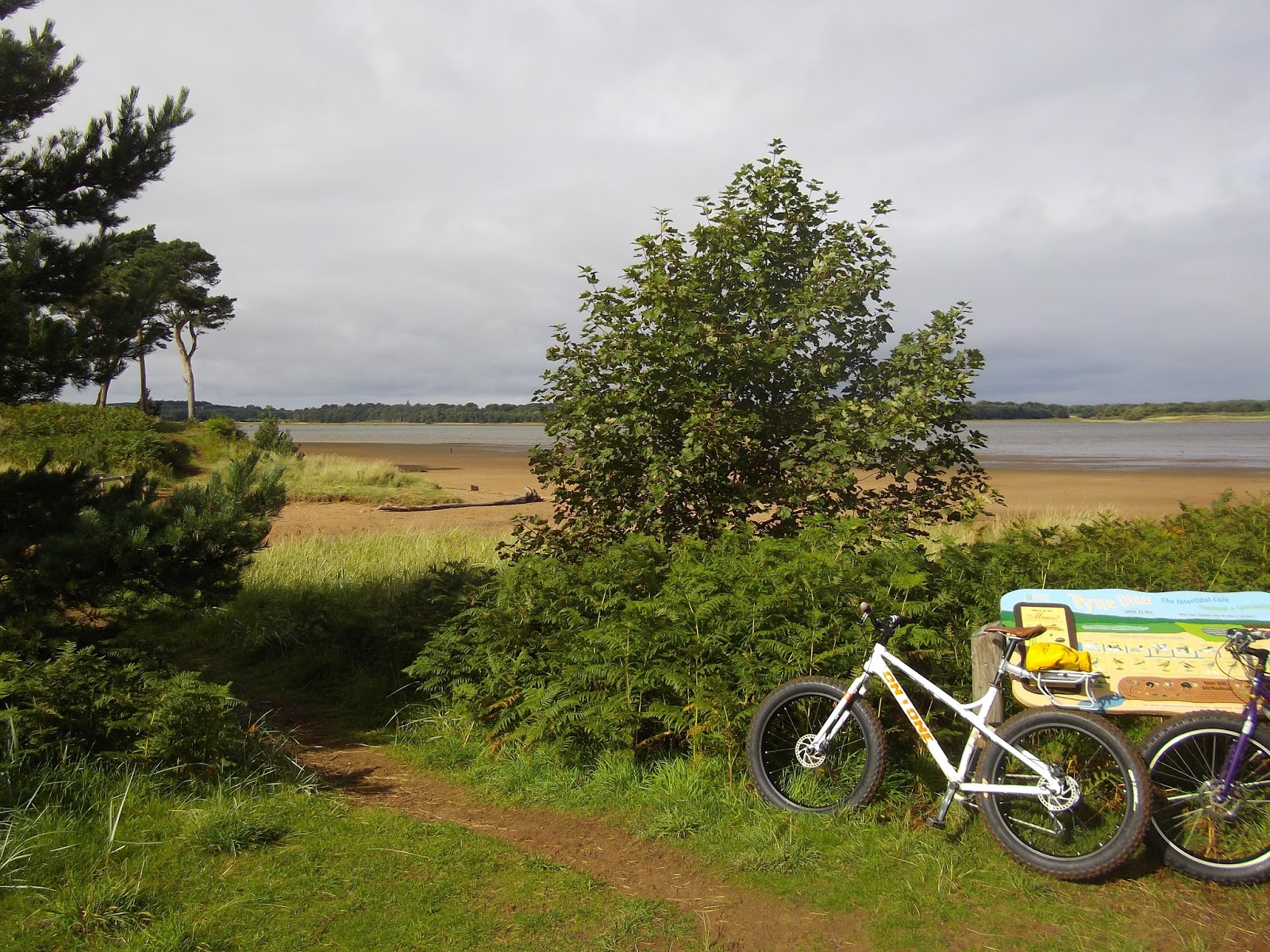 CoastKid. Five years ago he bought and built a bike I had never seen the like of. I have coveted the Surly Pugsley from that day but could never justify the expense. But life is for living and if you have patience and a keen eye on e-bay the exclusive can become affordable. Over the last year I have collected parts and placed them in boxes labelled 'useful'. Last month I pressed the left mouse button and bought an On-One Fatty frame set. This morning the patience paid off and the 'useful' became 'practical'; Oh, and it was a joy.